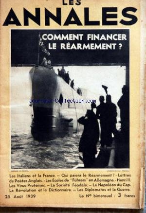 COMMENT FINANCER LE REARMEMENT - LES ITALIENS ET LA FRANCE - QUI PAIERA LE REARMEMENT - LETTRES DE POETES ANGLAIS - LES ECOLES DE FUHRERS EN ALLEMAGNE - HENRI II - LES VIRUS-PROTEINES - LA SOCIETE FEODALE - LE NAPOLEON DU CAP - LA REVOLUTION ET LE DICTIONNAIRE - LES DIPLOMATES ET LA GUERRE